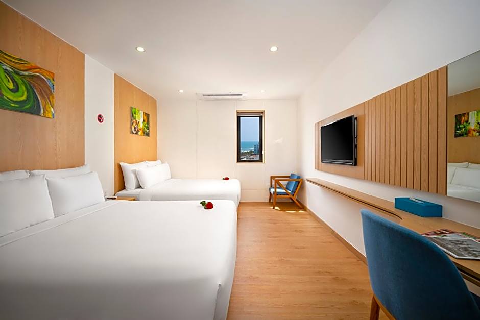 Modern room offers free WiFi, a flat-screen cable TV and air conditioning. The bathroom is stocked with slippers,toiletries and a hairdryer.